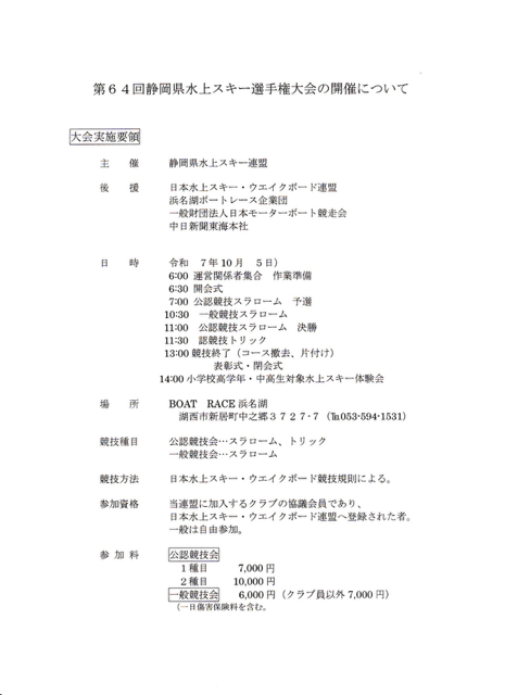 Event details 2025.10.05 - 2025.10.05 06:30 AM - 01:00 PM BOAT RACE浜名湖,静岡 静岡県水上スキー連盟 Bulletin 2025_shizuoka_bul... 2025_shizuoka_ent... Result --